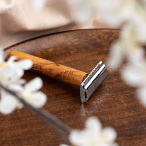 Ontdek de kunst van duurzaam scheren met een stijlvolle olijfhouten razor. Ervaar een glad scheerresultaat met respect voor milieu.